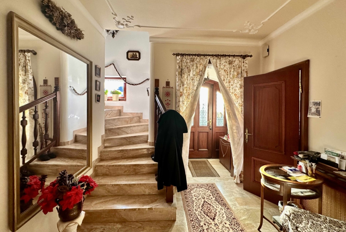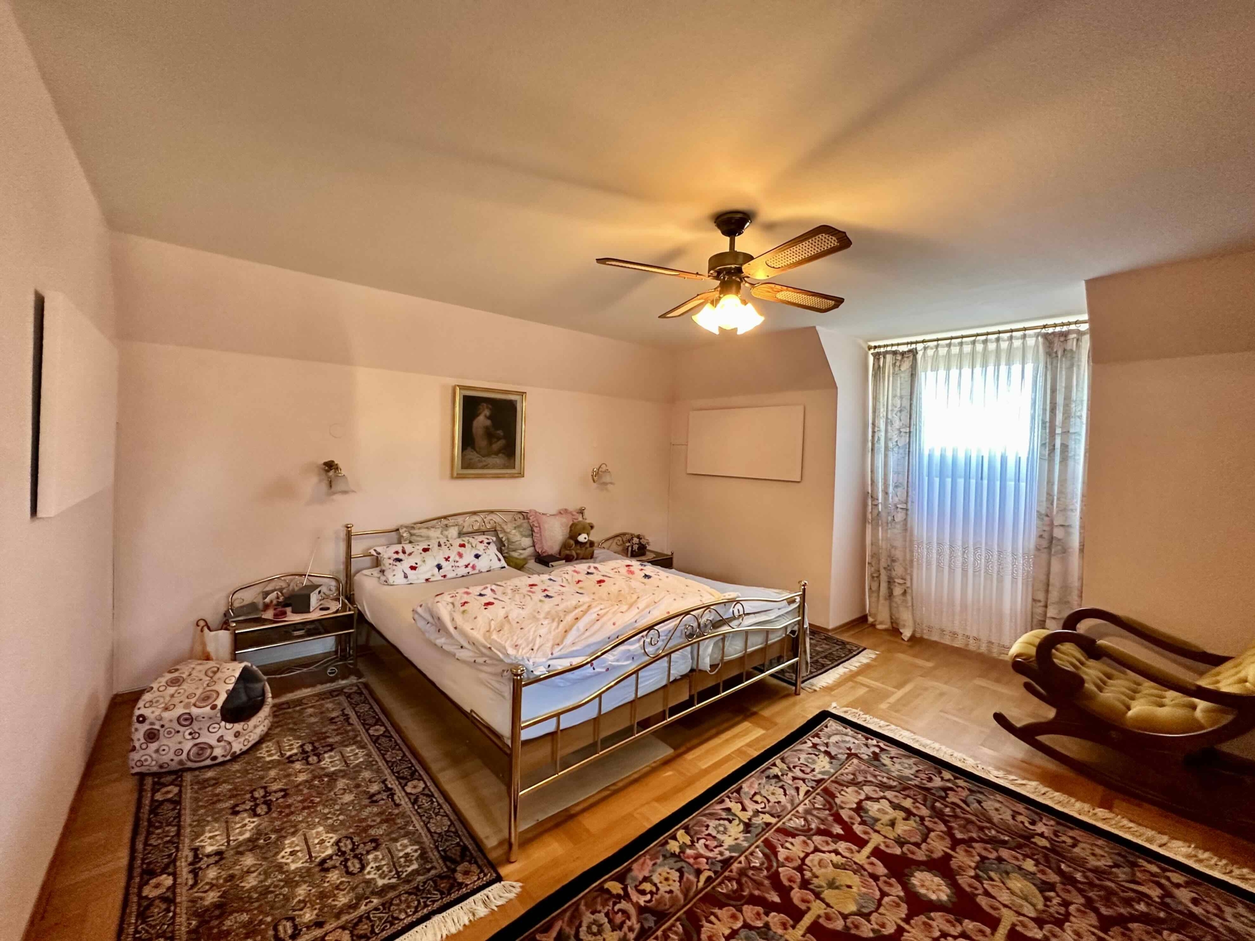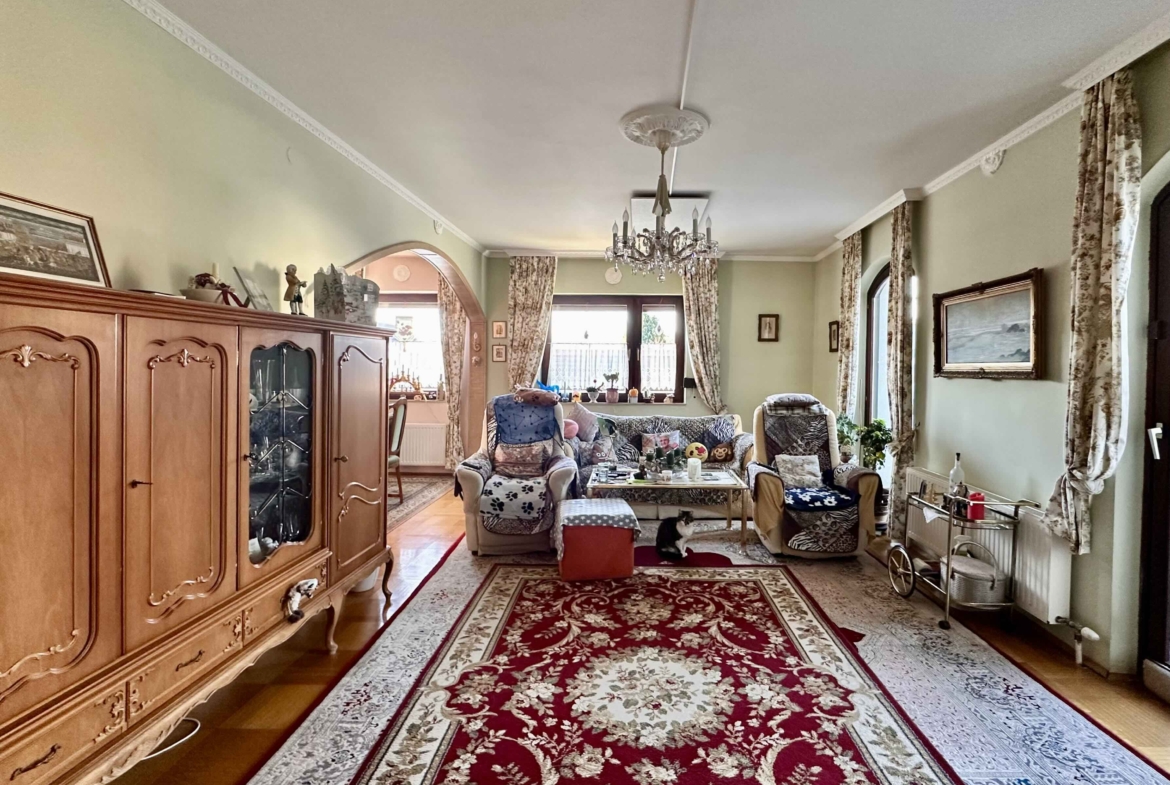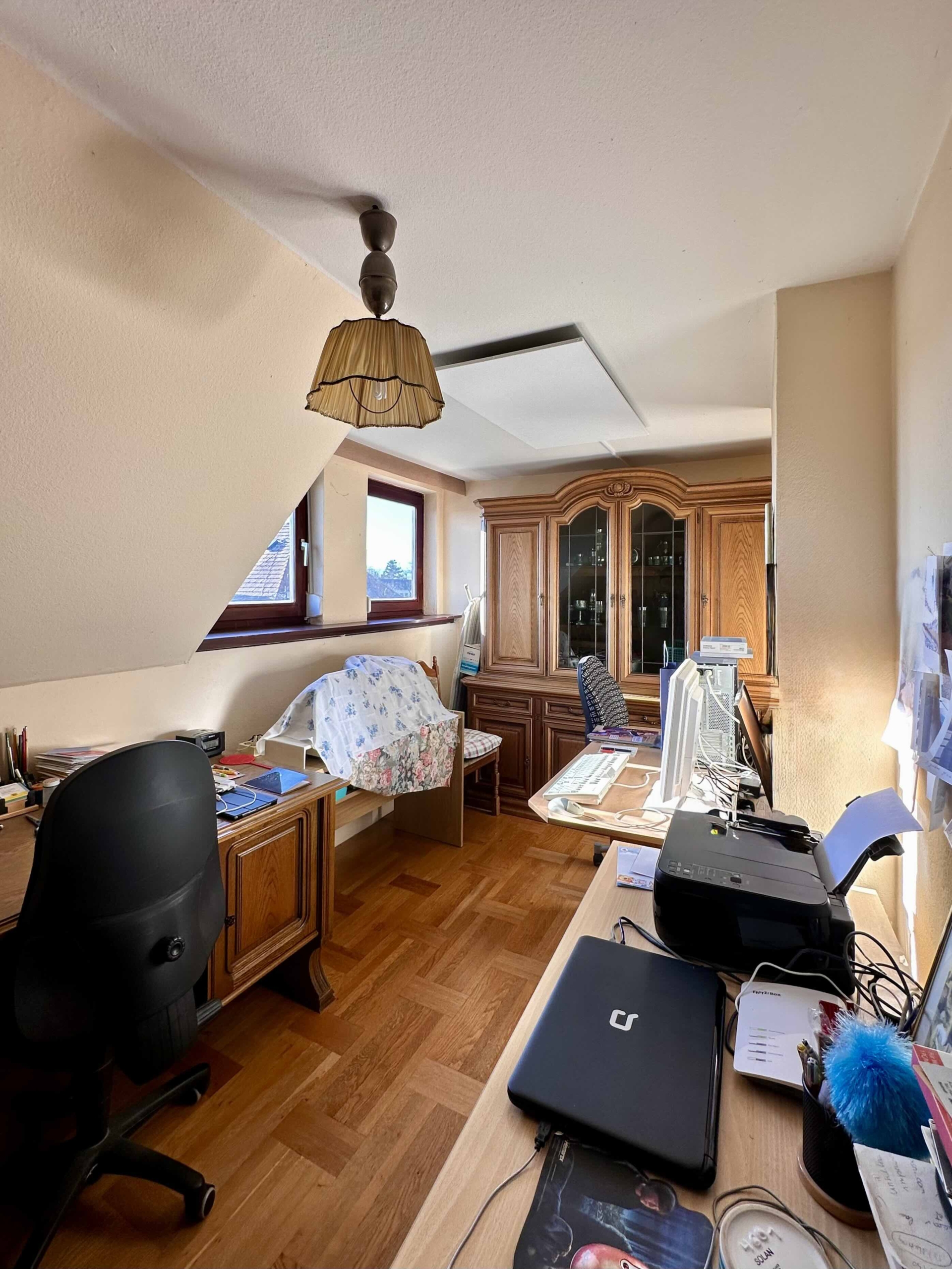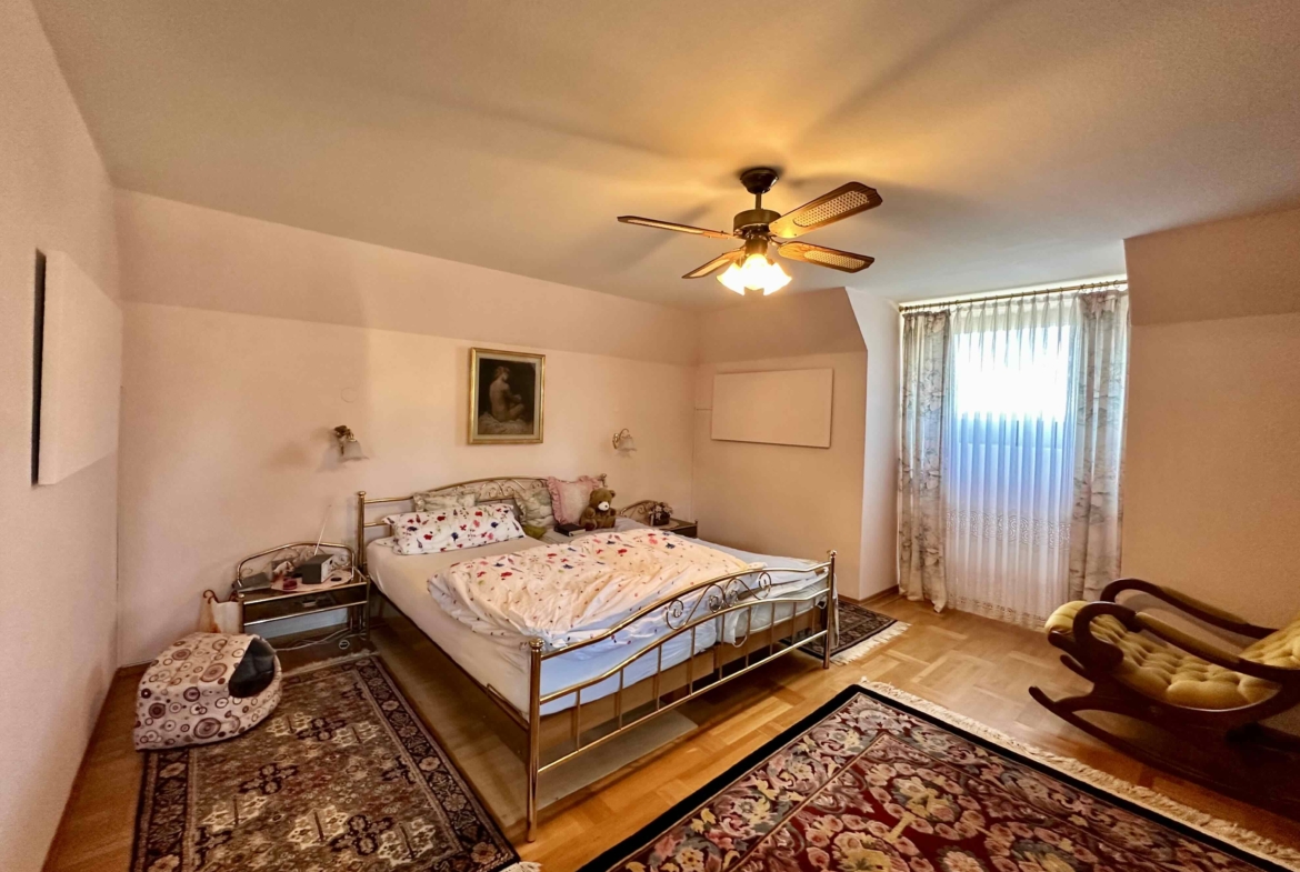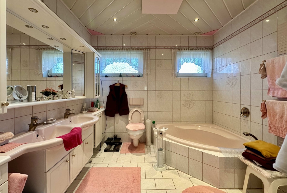 Dieses gepflegte Einfamilienhaus bietet auf insgesamt rund 294 m² Wohnnutzfläche viel Platz zum Wohnen und Wohlfühlen. Das Objekt verfügt über ein großzügiges Erdgeschoss mit Wohnzimmer mit Essbereich, Küche, großes Esszimmer sowie direktem Zugang zur überdachten Terrasse. Im Dachgeschoss befinden sich Schlafzimmer, Gästezimmer, Büro und Sanitärbereiche.